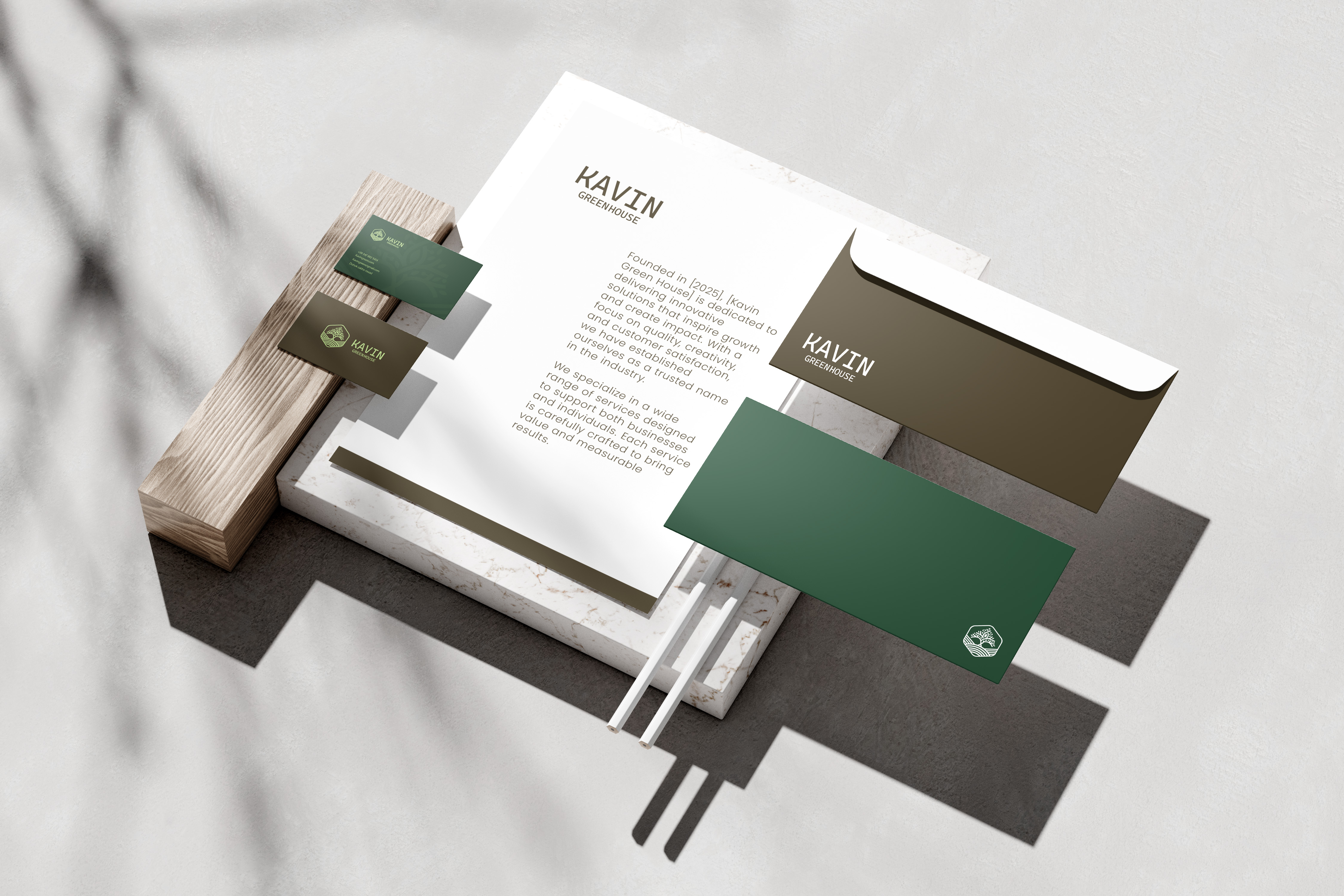 Every great vision deserves a unique visual identity to tell its story and reflect its values. Therefore, we at Falaq Studio are honored to have earned the trust of a renowned name like "Kavin Group" to design the visual identity for their promising new project, "Kavin Green House."